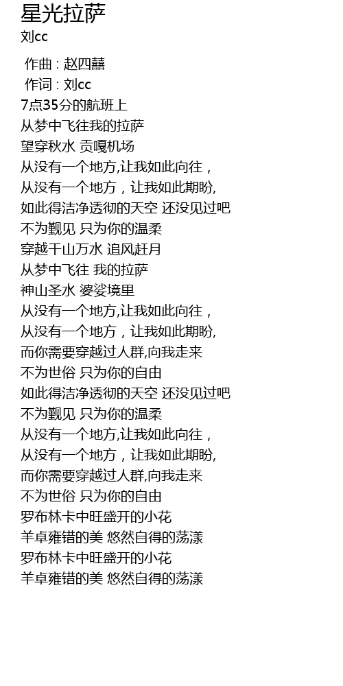 | [00:18.33] | 从梦中飞往我的拉萨 |