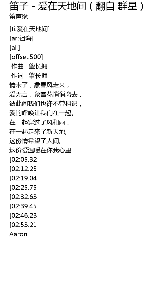 | Song | 笛子 - 爱在天地间(翻自 群星) |