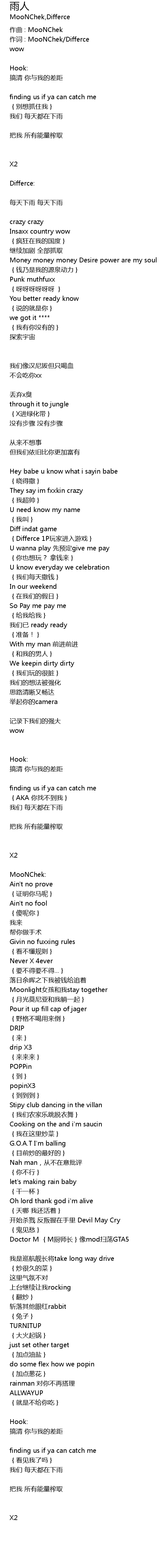 | 作词 : MooNChek/Differce | |
