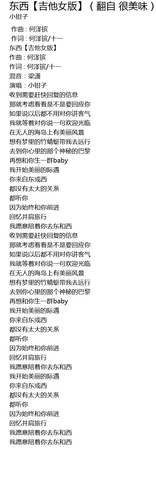 | [00:04.945] | 东西【吉他女版】 |