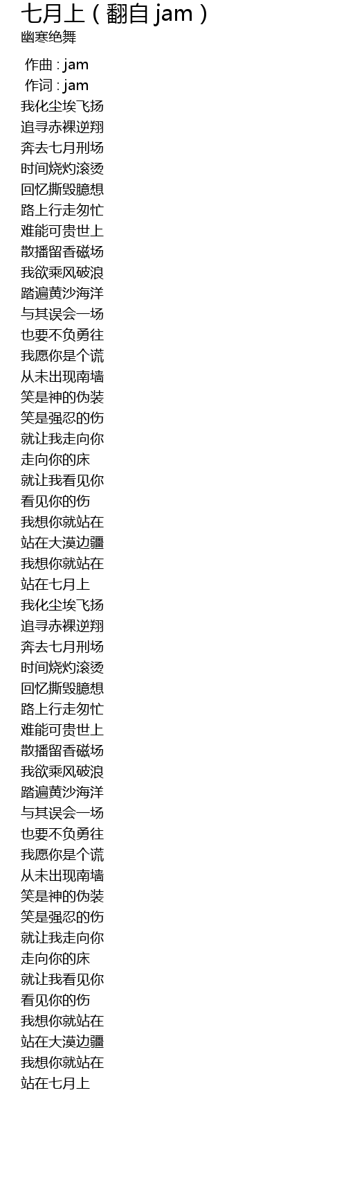 | [01:21.75] | zhàn zài qī yuè shàng |