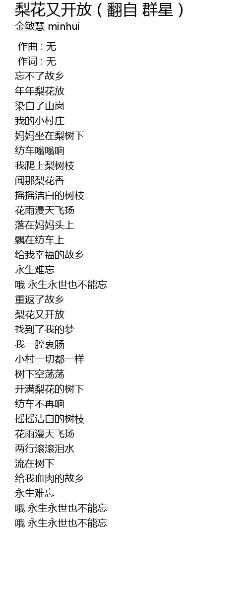 | Song | 梨花又开放(翻自 群星) |