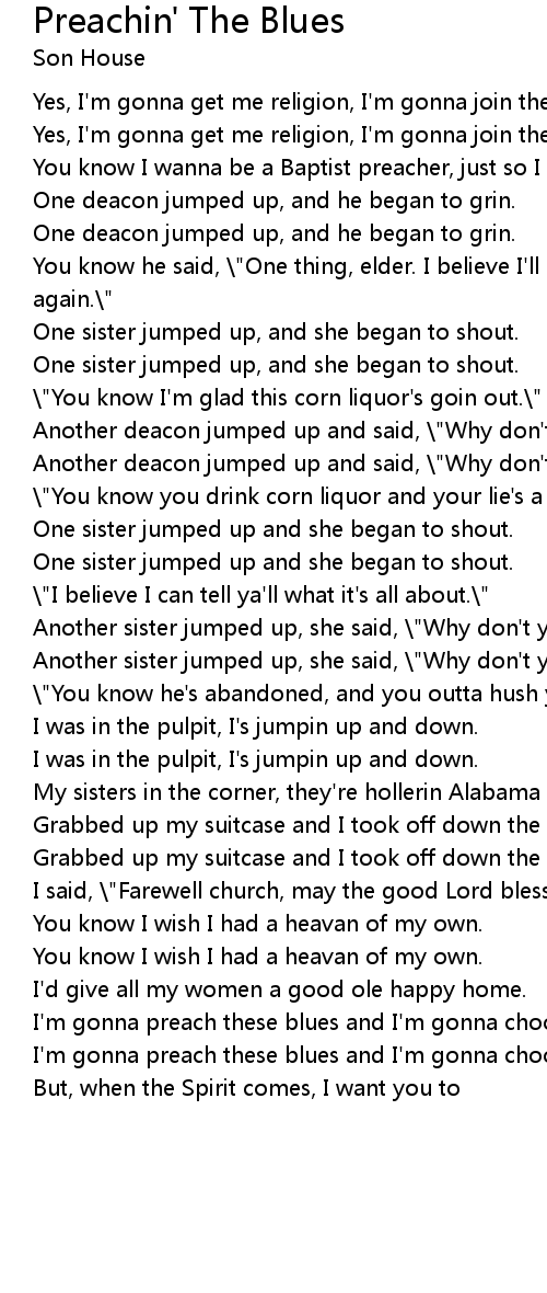 I'm gonna preach these blues and I'm gonna choose my seat and sit down. |