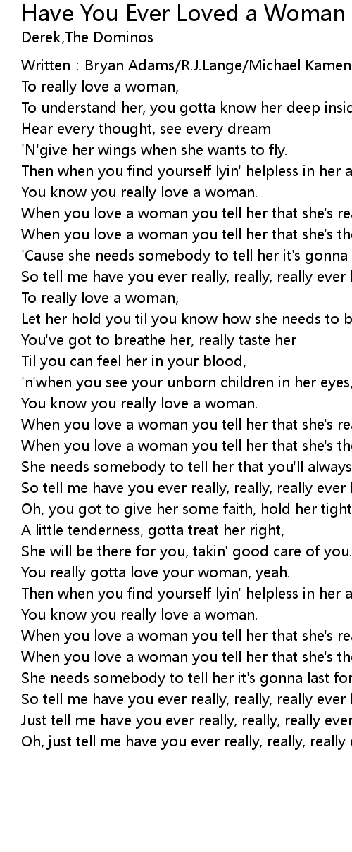 | Just tell me have you ever really, really, really ever loved a woman? | |