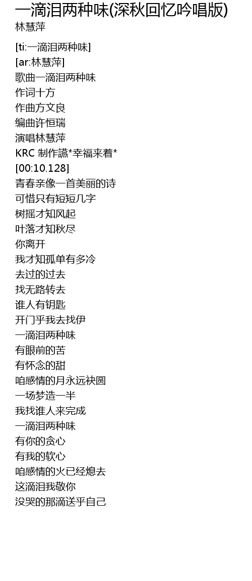 | [01:08.924] | 一滴泪两种味 |