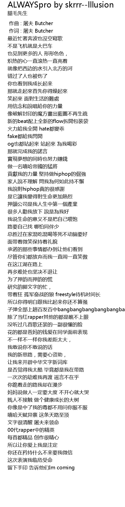 | [00:01.000] | 作词 : 屠夫 Butcher |
