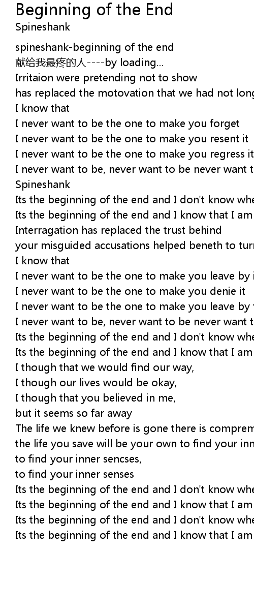 | [02:43.61] | Its the beginning of the end and I know that I am all alone |