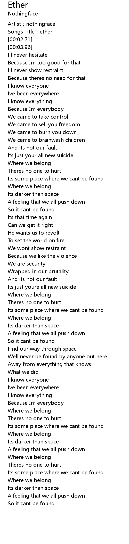 | [00:00.65] | Artist:nothingface |