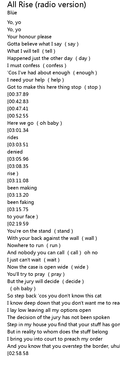 | [03:37.88][02:19.59][01:16.06] | All rise (I rest my case) |