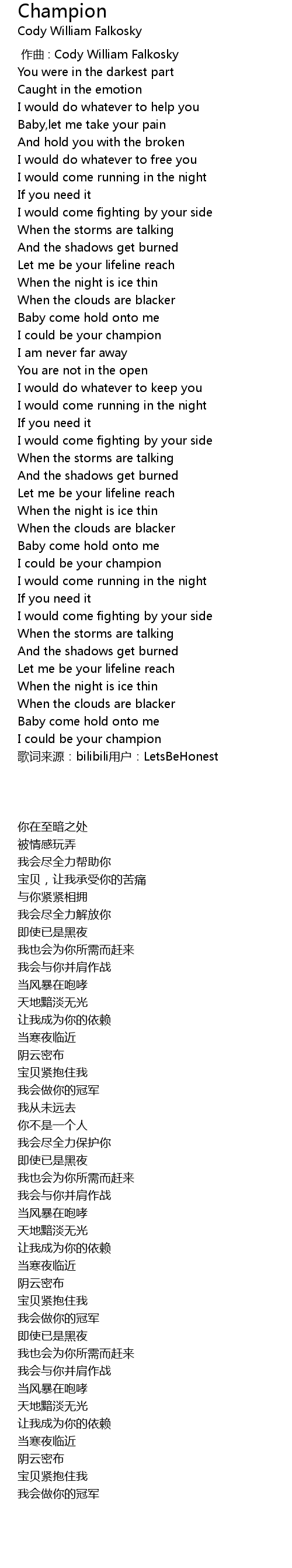 | [00:00.000] | zuo qu : Cody William Falkosky |