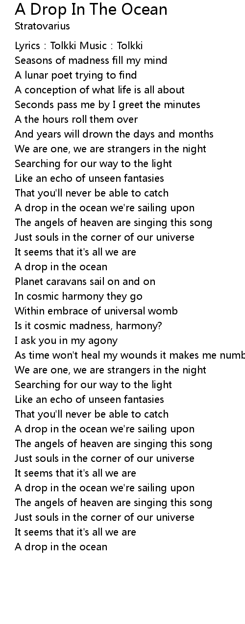 | Song | A Drop In The Ocean |