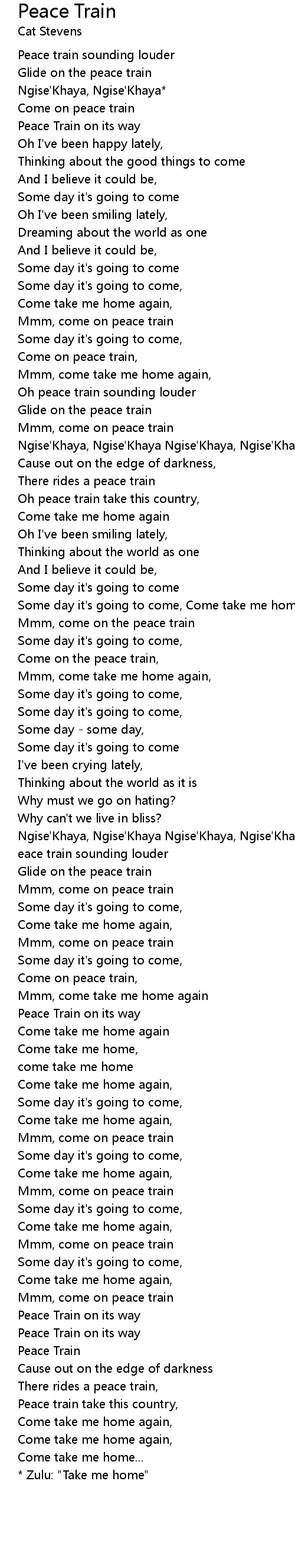 Come on peace train |