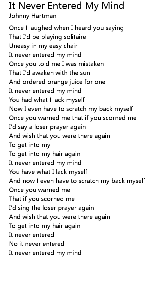 It Never Entered My Mind Lyrics