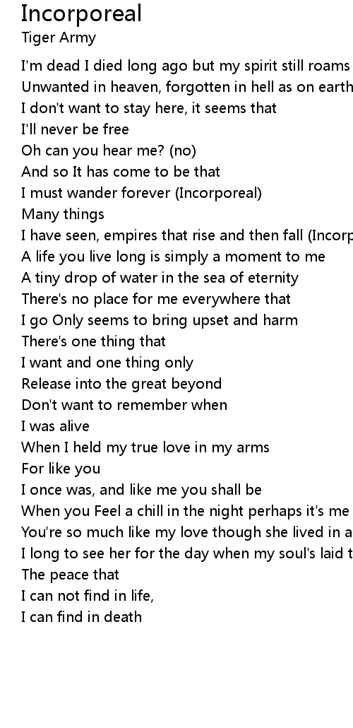 You're so much like my love though she lived in a long ago time (Incorporeal)