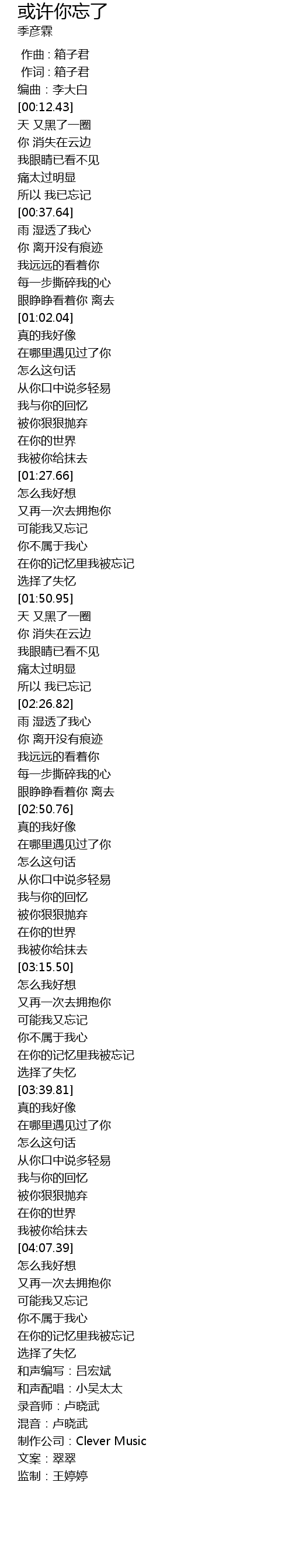 | [03:23.11] | kě néng wǒ yòu wàng jì |