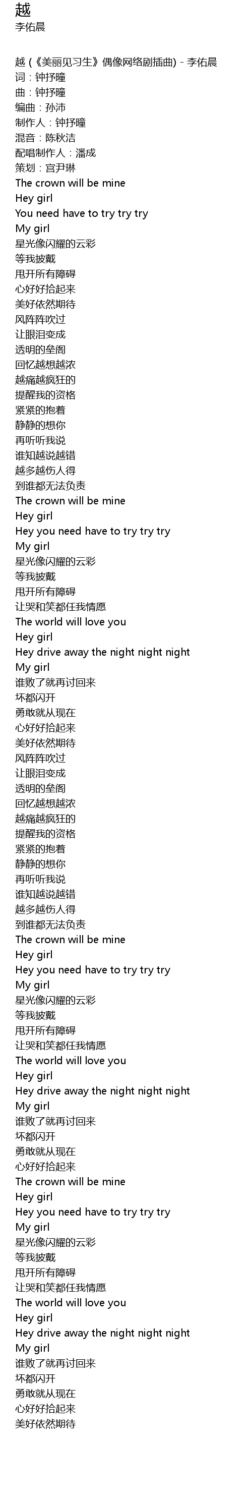 | 越 (《美丽见习生》偶像网络剧插曲) - 李佑晨 | |