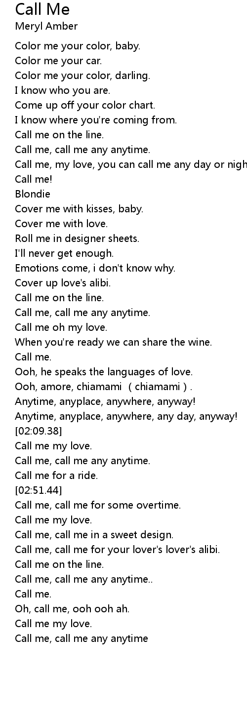 | [03:18.70] | Oh, call me, ooh ooh ah. |