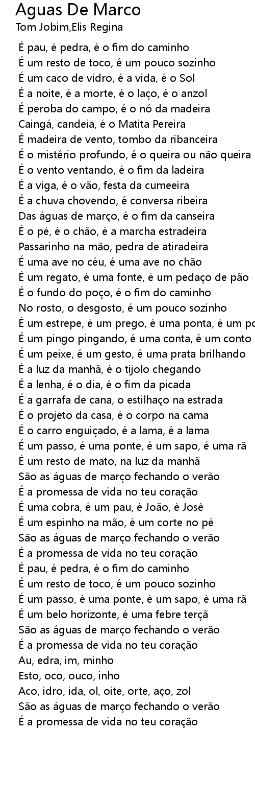 | [00:44.629] | Das águas de março, é o fim da canseira |