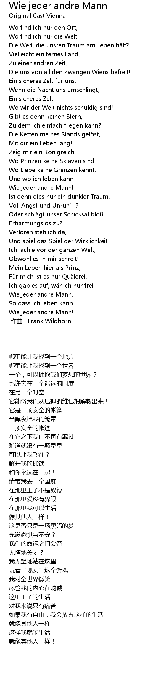 | Song | Wie jeder andre Mann |