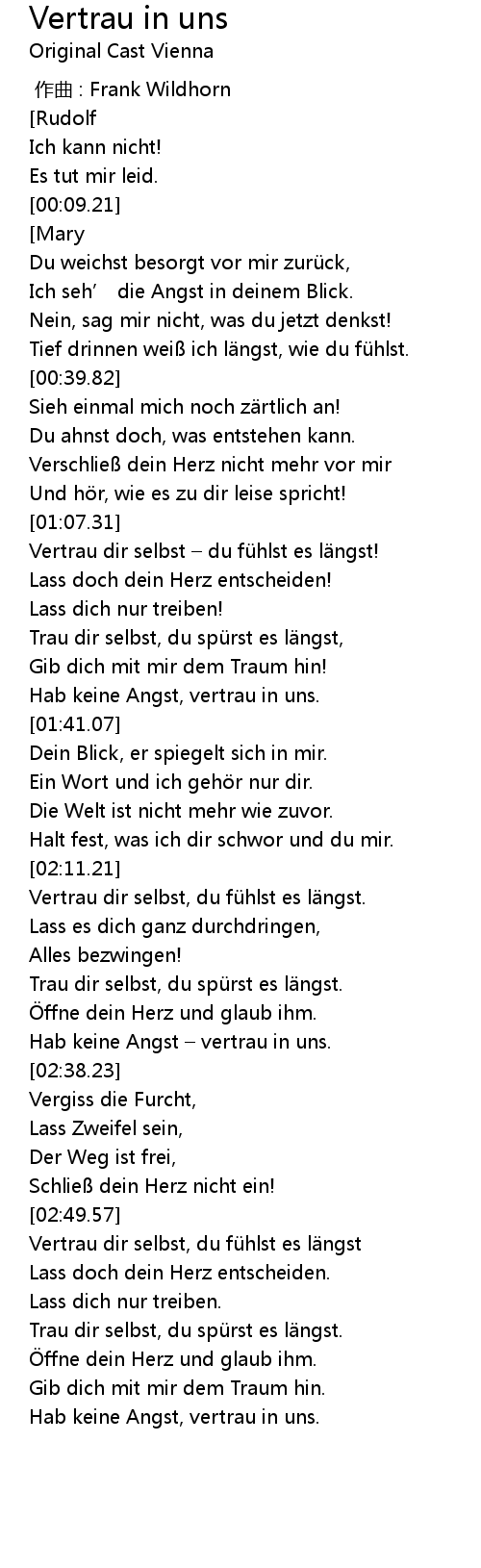 | [02:33.21] | Hab keine Angst – vertrau in uns. |