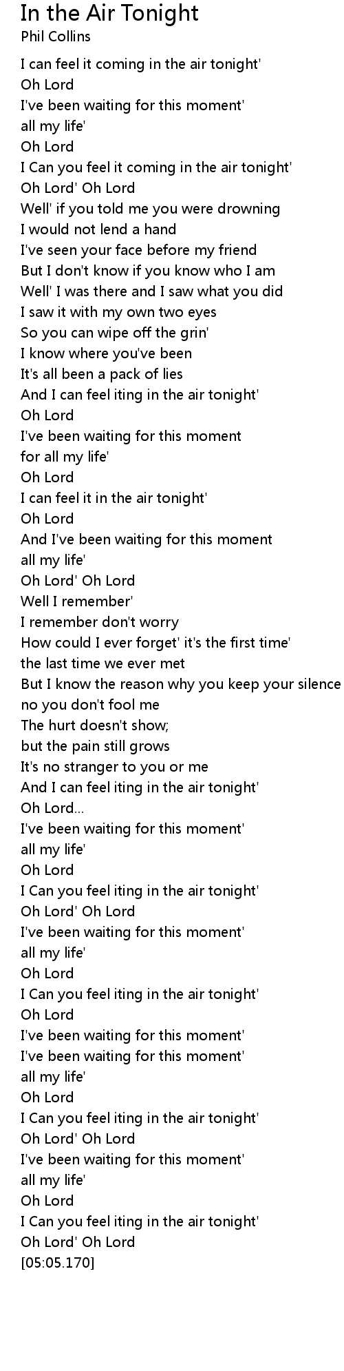 | [03:47.304] | I Can you feel iting in the air tonight' |