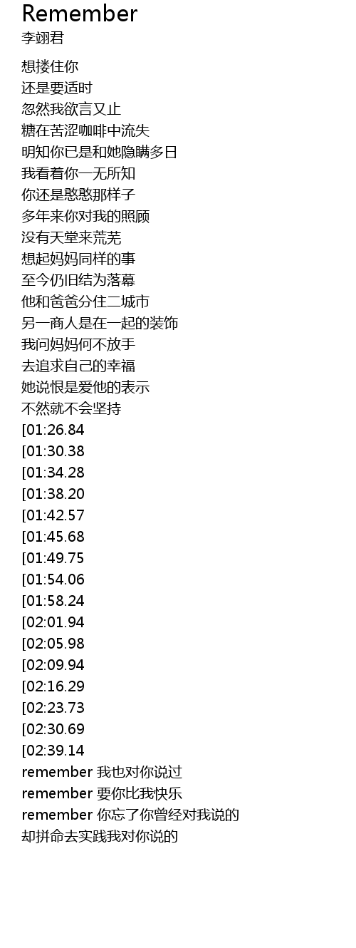 | [03:52.49][02:16.29] | remember 你曾经爱过我 |