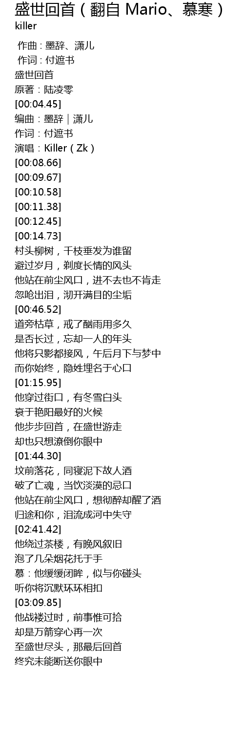 | [00:07.64] | 演唱:Killer(Zk) |