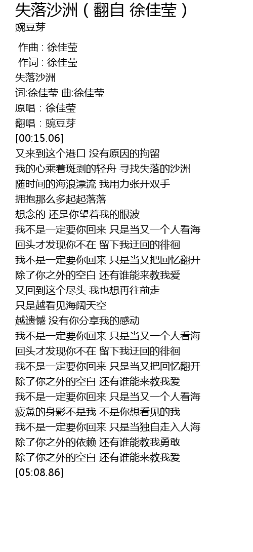 | [03:06.08] | 回头才发现你不在 留下我迂回的徘徊 |