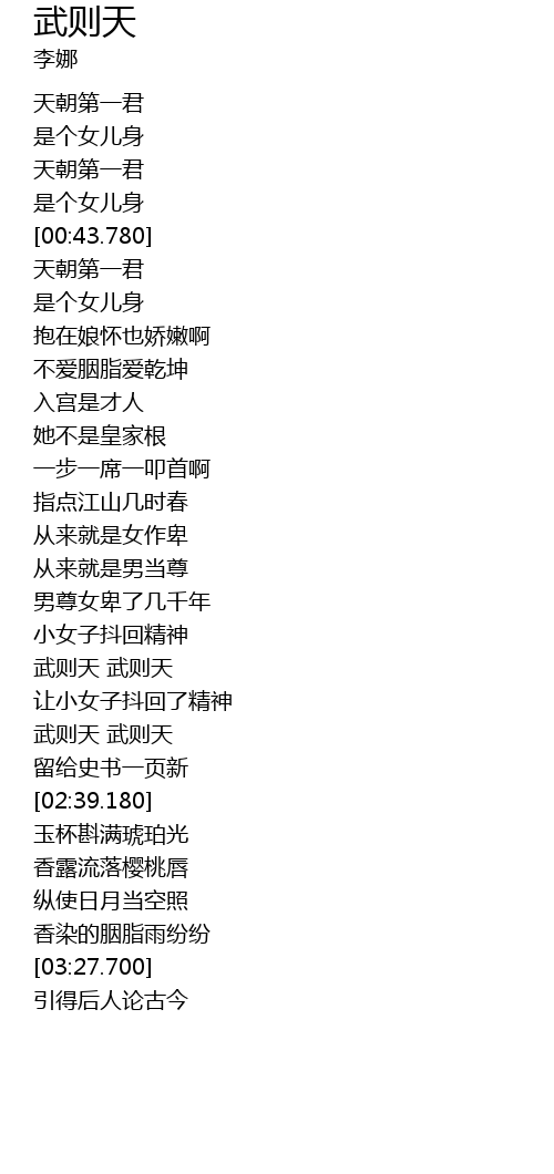 | [02:21.670] | wǔ zé tiān wǔ zé tiān |
