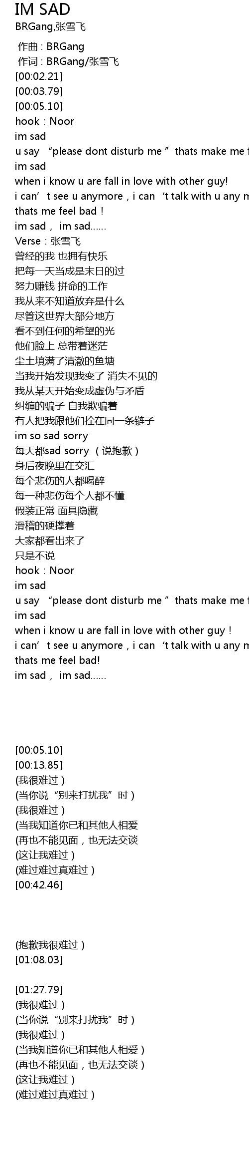 | [01:08.03] | mei tian du sad sorry shuo bao qian |