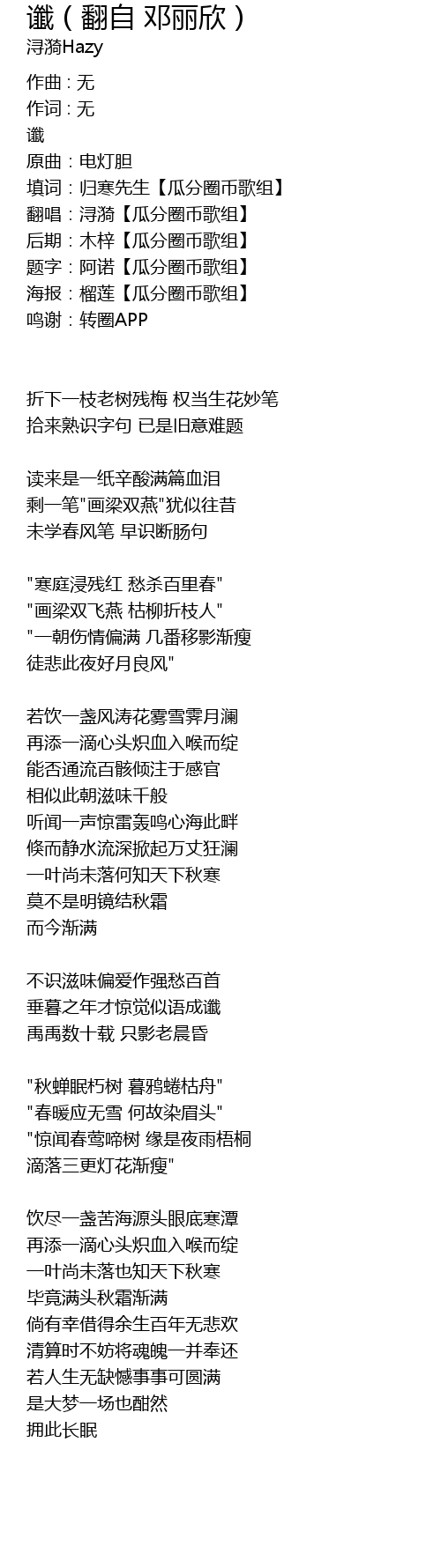 | 填词:归寒先生【瓜分圈币歌组】 | |