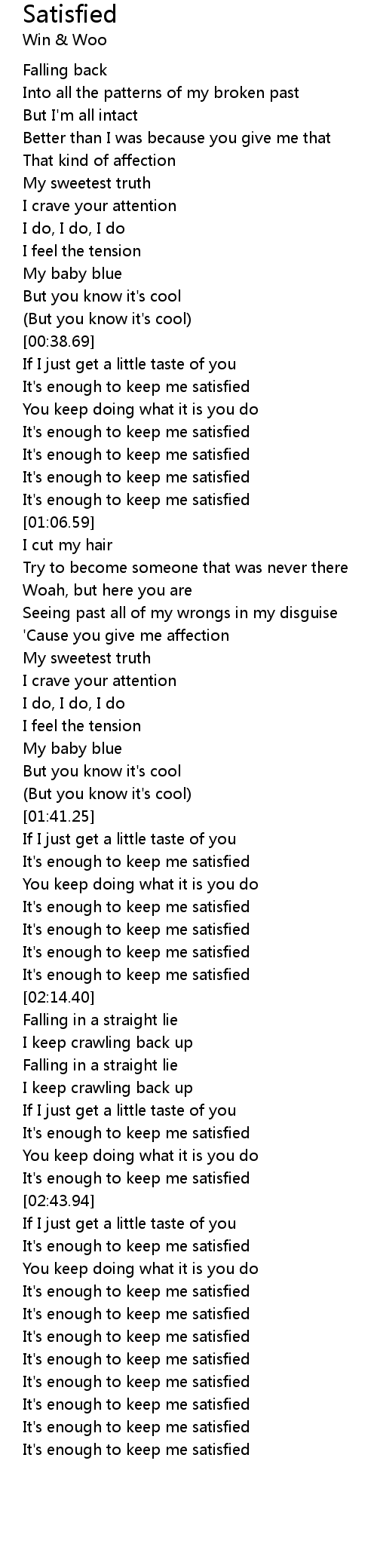 | [03:01.58] | It's enough to keep me satisfied |