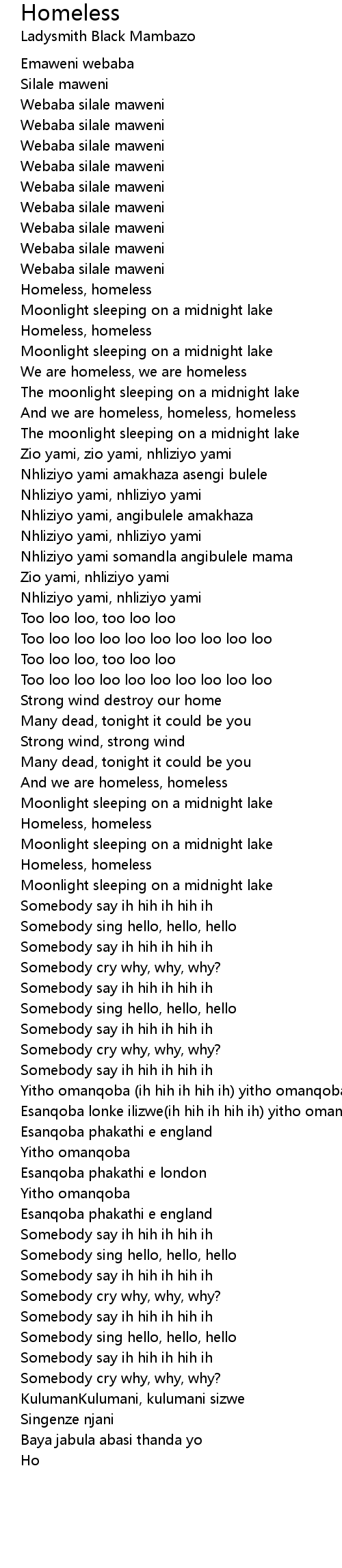 And we are homeless, homeless, homeless |