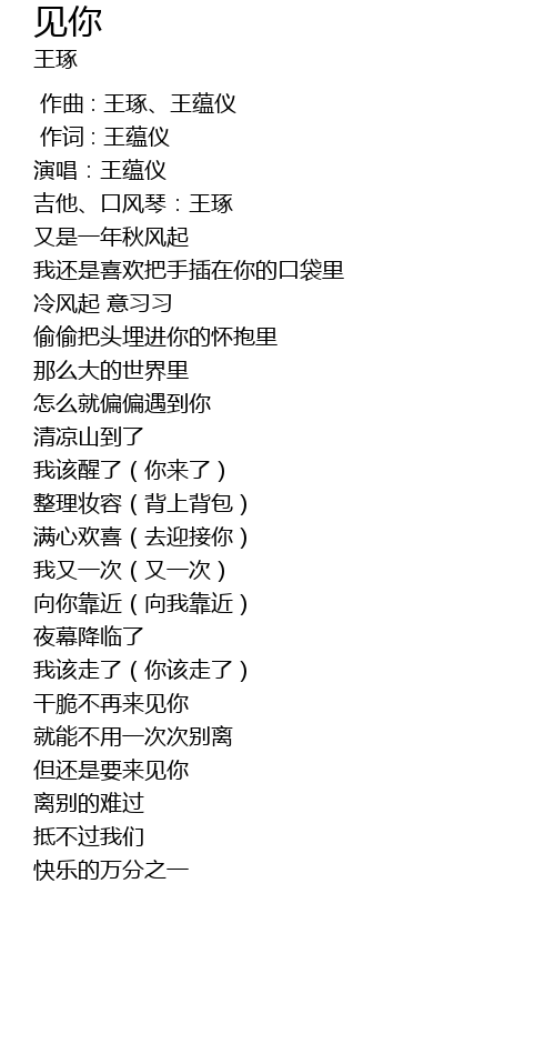 | [00:01.000] | 作词 : 王蕴仪 |