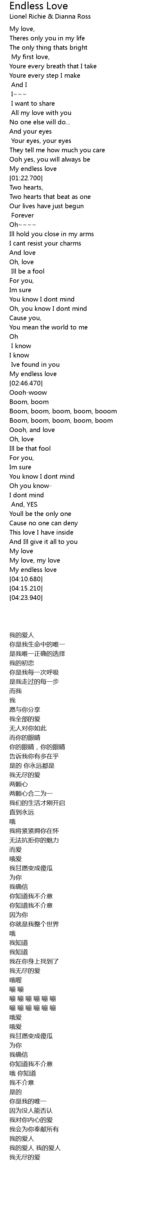 | [04:00.570] | My endless love |