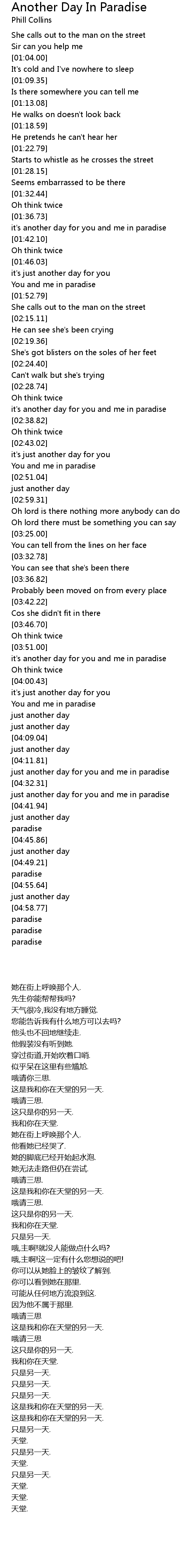 Song Another Day In Paradise