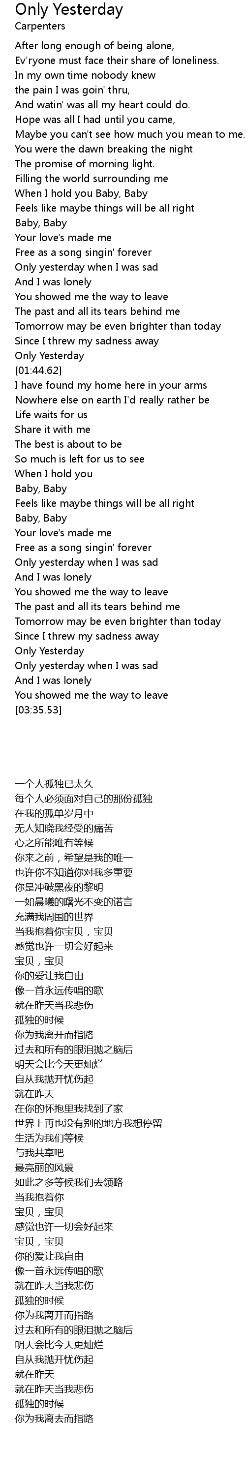 [01:41.85] Only Yesterday
