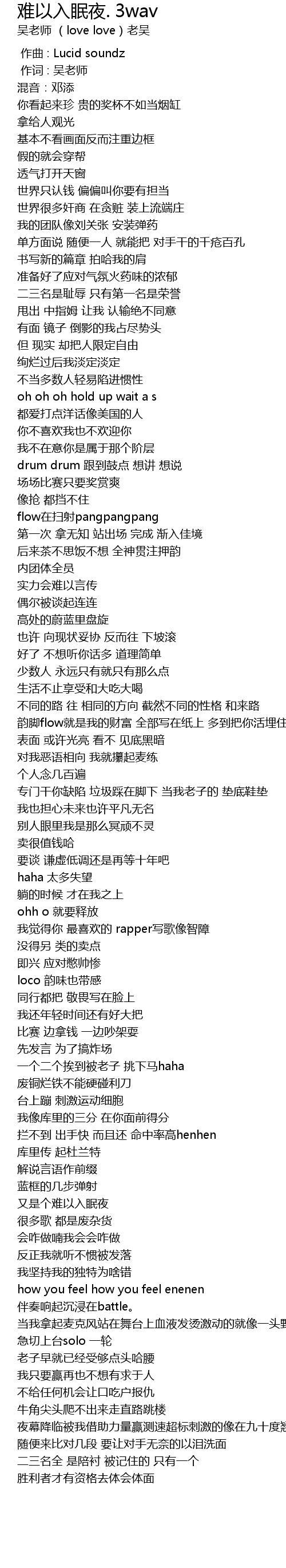 | Song | 难以入眠夜. 3wav |