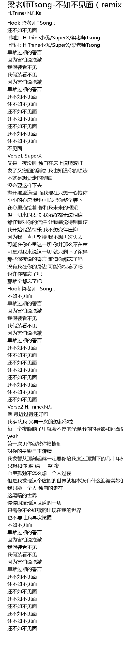 | [00:01.000] | 作词 : H.Tnine小优/SuperX/梁老师Tsong |