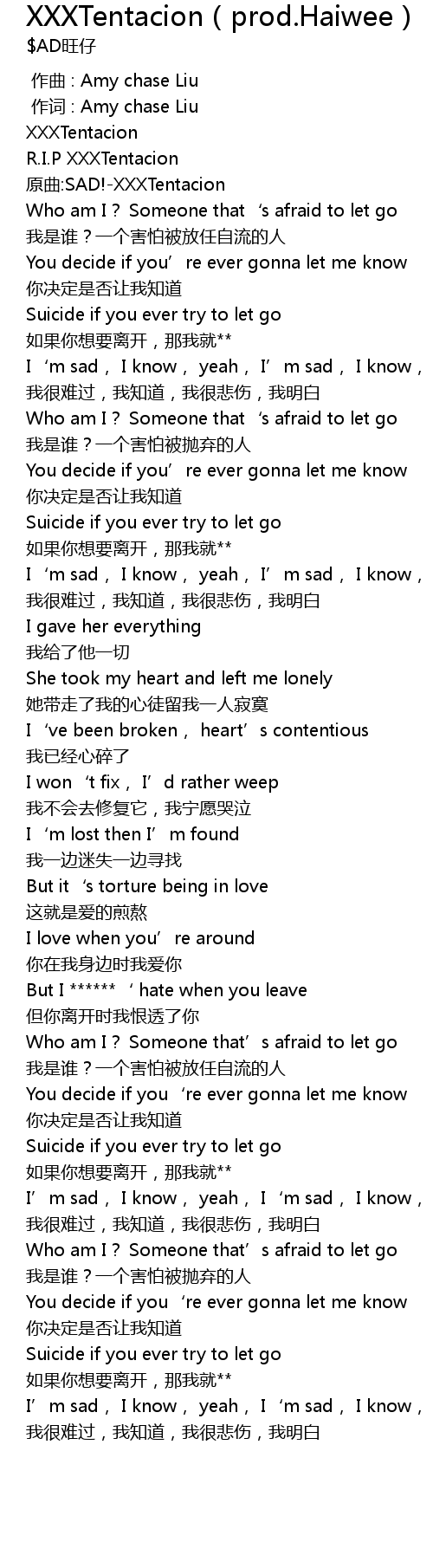 | [00:32.915] | yuan qu: SAD! XXXTentacion |