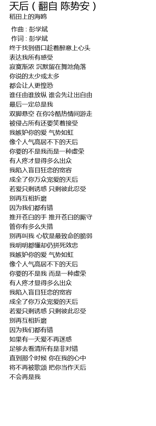| [03:38.365] | jiang bu zai bei ge song ba ni dang zuo tian hou |