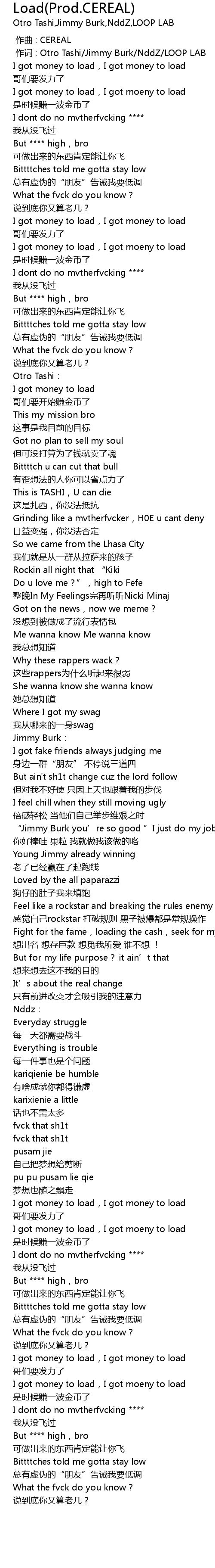 | [01:36.400] | Fight for the fame,loading the cash,seek for my queen sh1t! |
