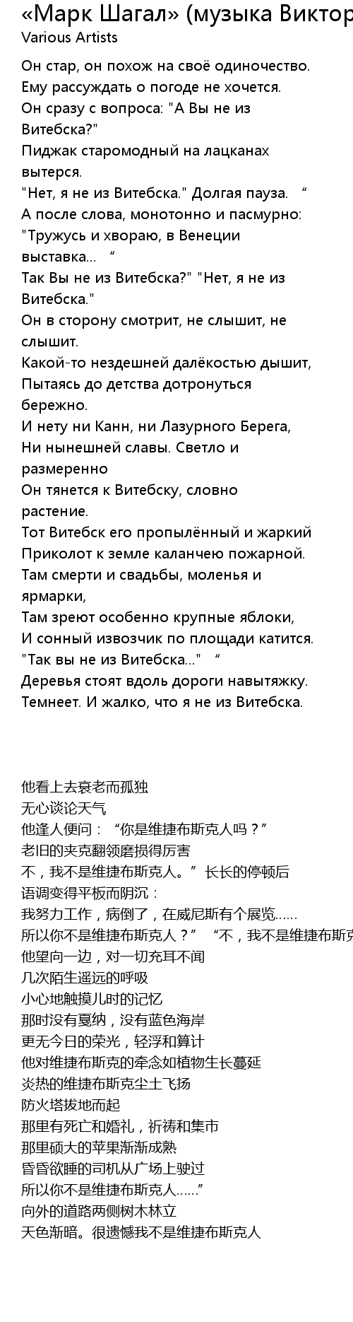«Марк Шагал» (музыка Виктор Берковский, слова Роберт Рождественский) , Lyrics