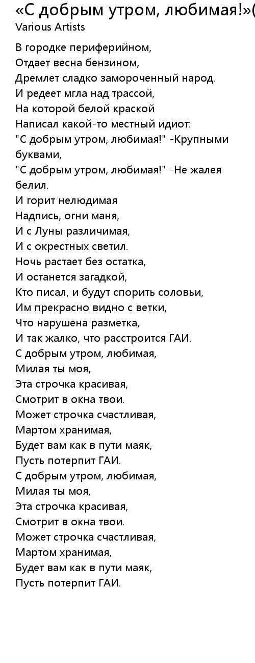 «С добрым утром, любимая!»(музыка Константин Тарасов, слова Олег Митяев) , ! , Lyrics