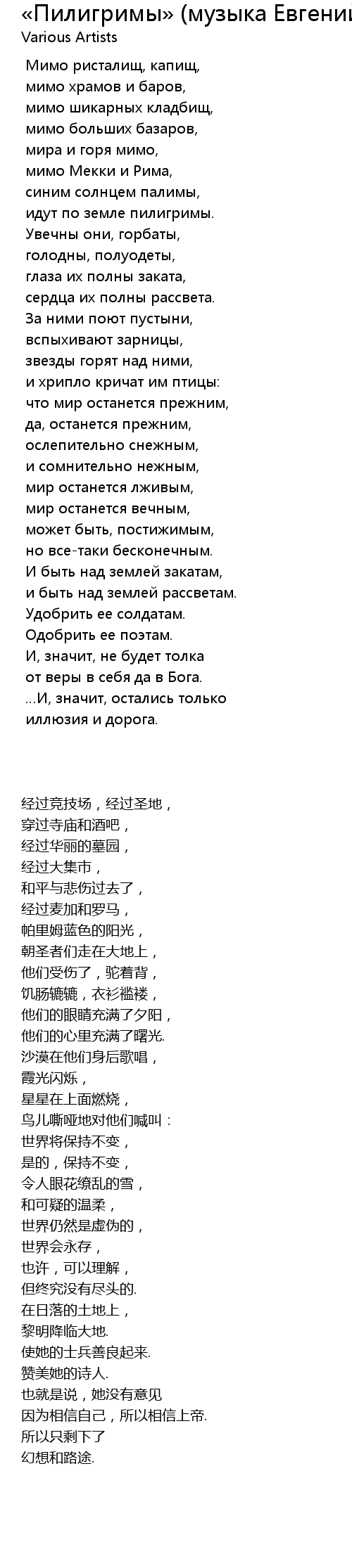 «Пилигримы» (музыка Евгений Клячкин, слова Иосиф Бродский) , Lyrics