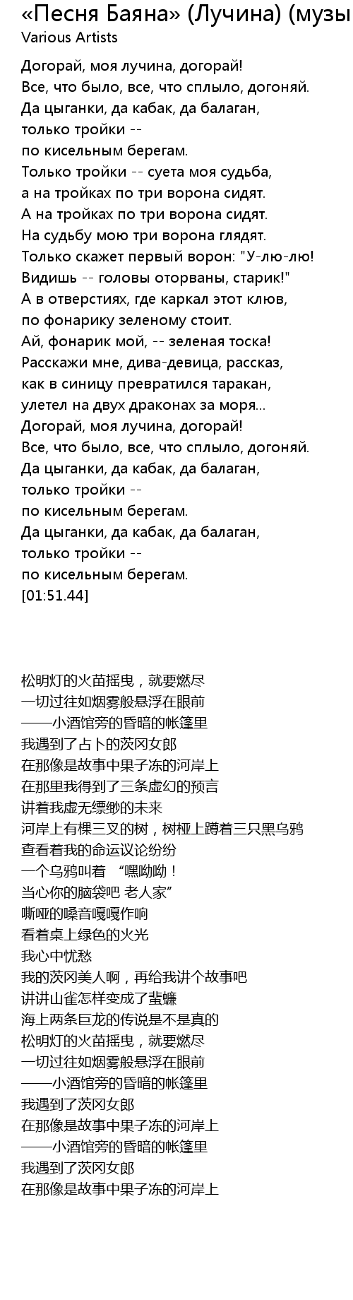 «Песня Баяна» (Лучина) (музыка Александр Мирзаян, слова Виктор Соснора) , Lyrics