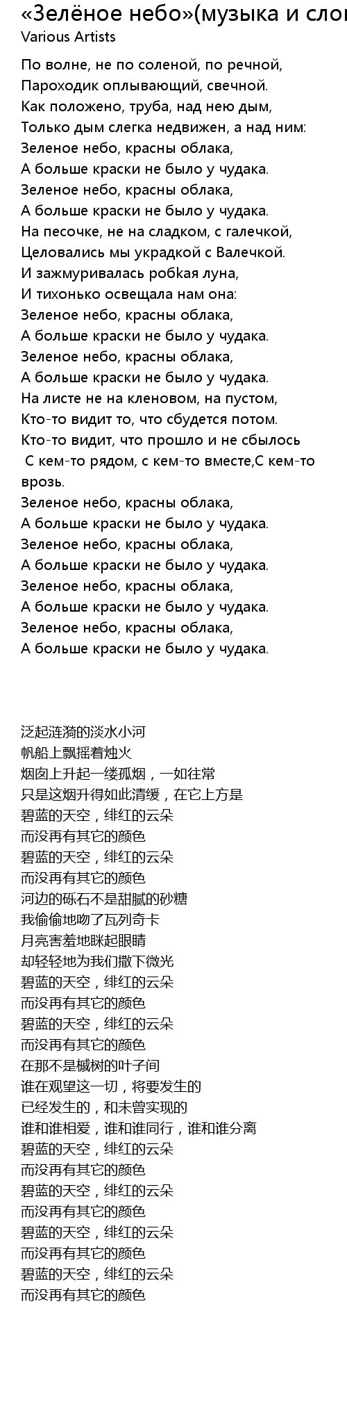 Зеленое небо, красны облака, |