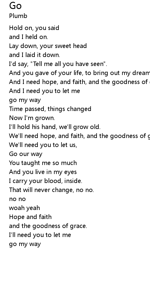 And I need hope, and faith, and the goodness of grace. |