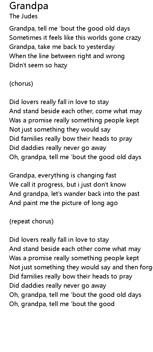 Oh, grandpa, tell me 'bout the good |