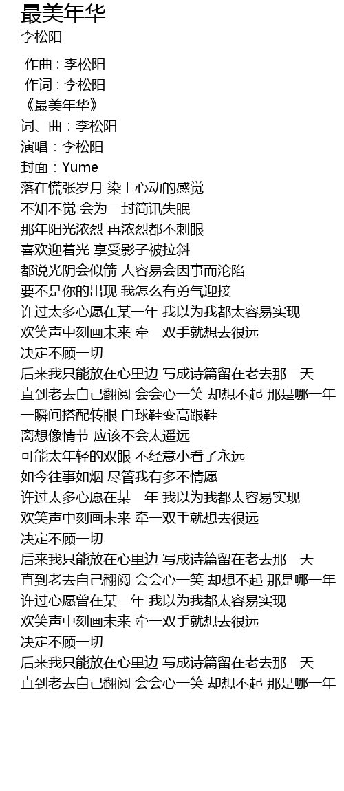 | [03:24.405] | 后来我只能放在心里边 写成诗篇留在老去那一天 |